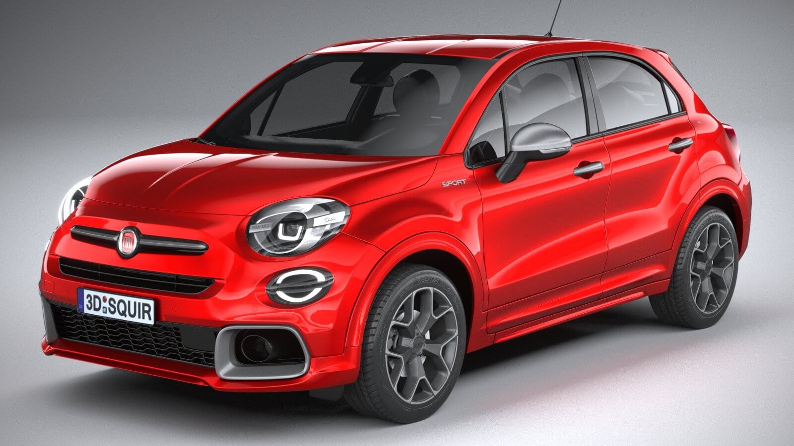 Red Fiat 500X Sport 2019 on a gray background wallpapers and images Download the best wallpapers photos and pictures for your desktop for free only here a couple of clicks. High detailed model created by SQUIR team. 3dsmax 2010 format is also included but without lightningrendering studio setups and with standard materials only.